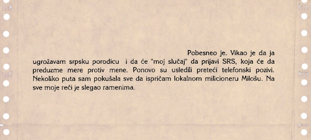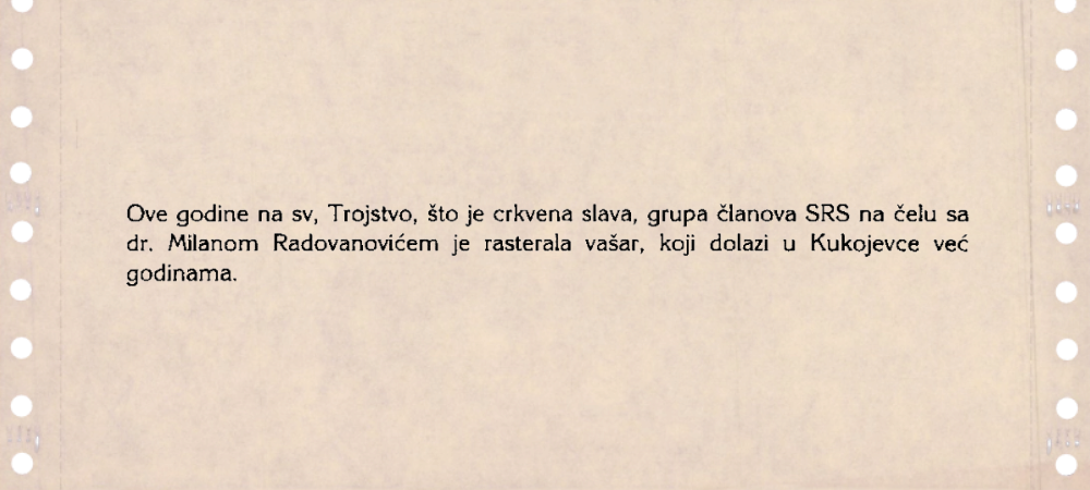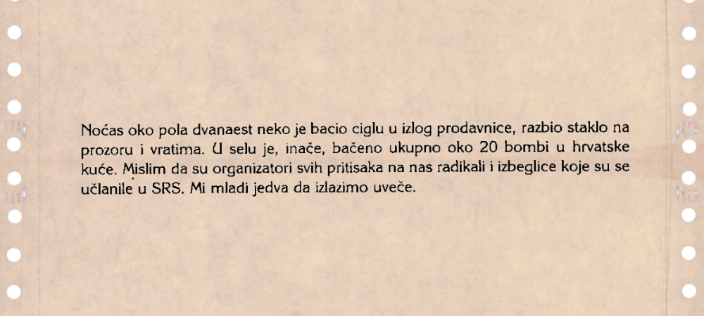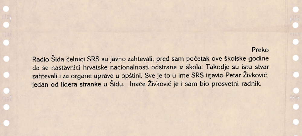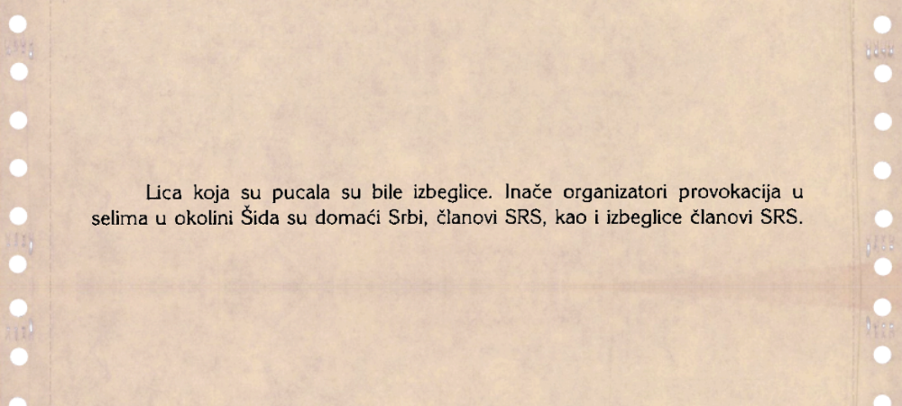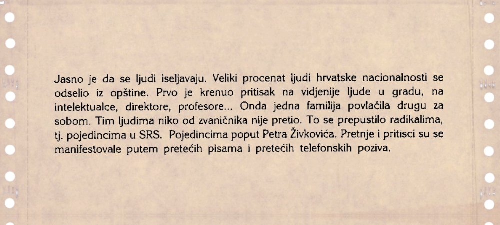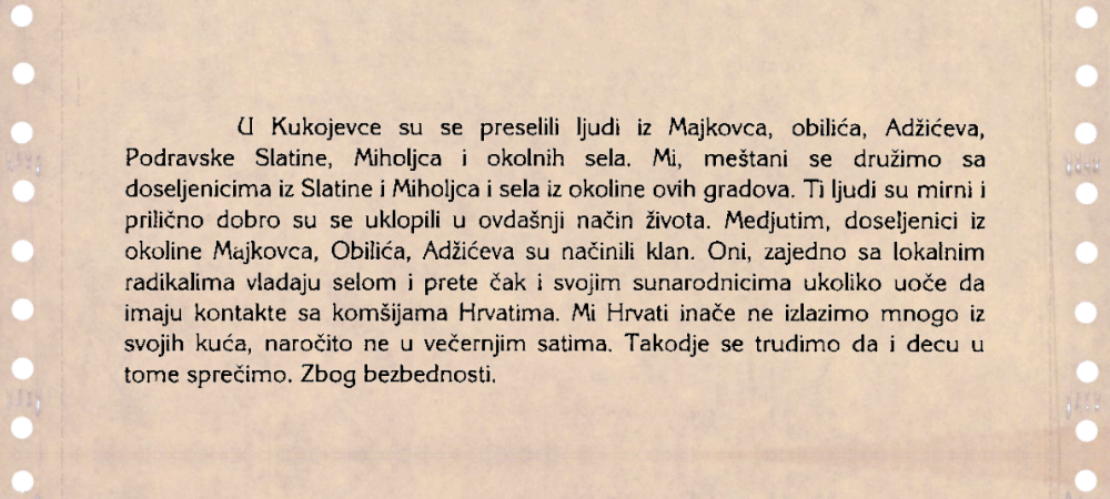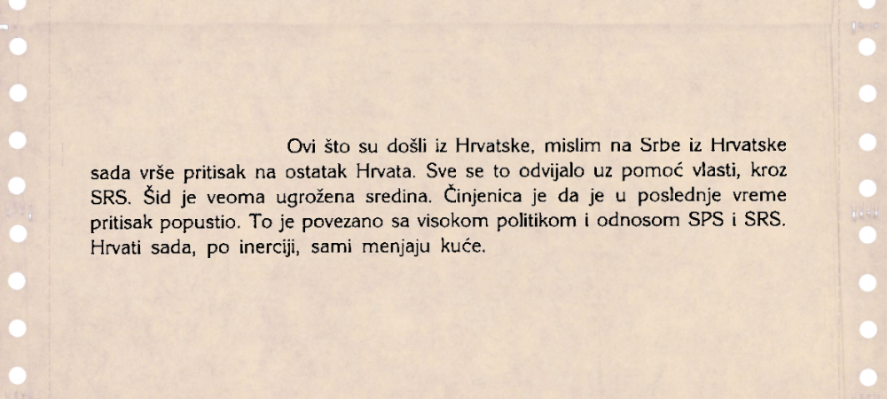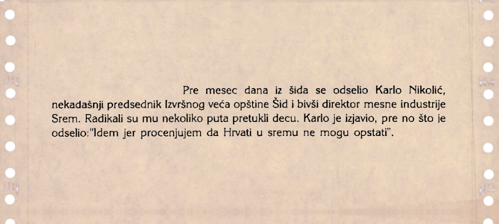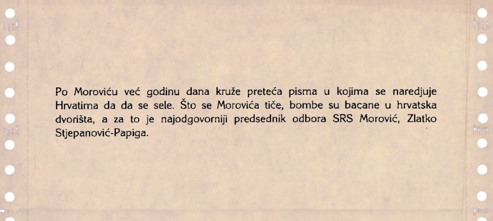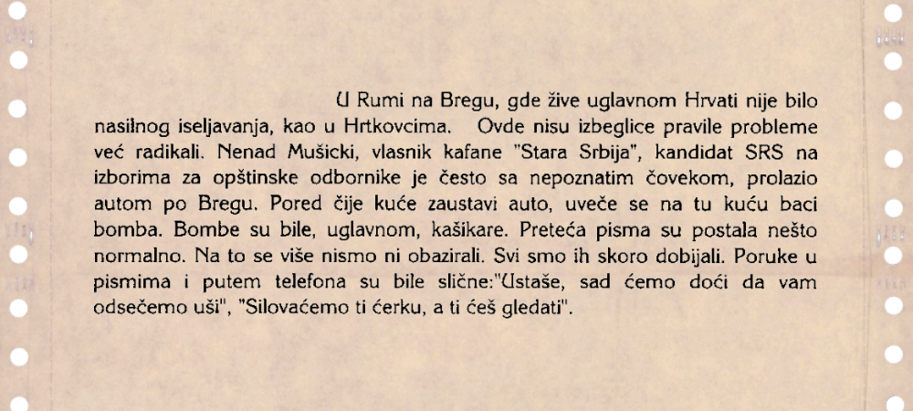 „Ubeđen da ćete i vi Srbi iz Hrtkovaca i ostalih sela u okolini znati da sačuvate međusobnu slogu i jedinstvo, da ćete se vrlo brzo otarasiti preostalih Hrvata u vašem selu i okolini.“