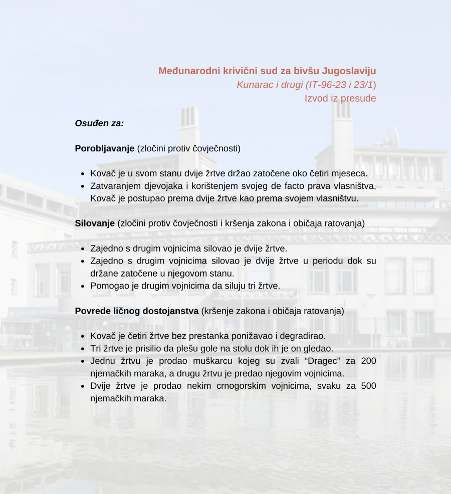 Pravosnažno je osuđen (2002.) pred Međunarodnim krivičnim sudom za bivšu Jugoslaviju (MKSJ) za porobljavanje, silovanje i povrede ličnog dostojanstva kao zločin protiv čovečnosti i ratni zločin, na 20 godina zatvora. Kaznu je izdržavao u Norveškoj, odakle je 2013. godine prevremeno pušten na slobodu, nakon izdržane dve trećine kazne.